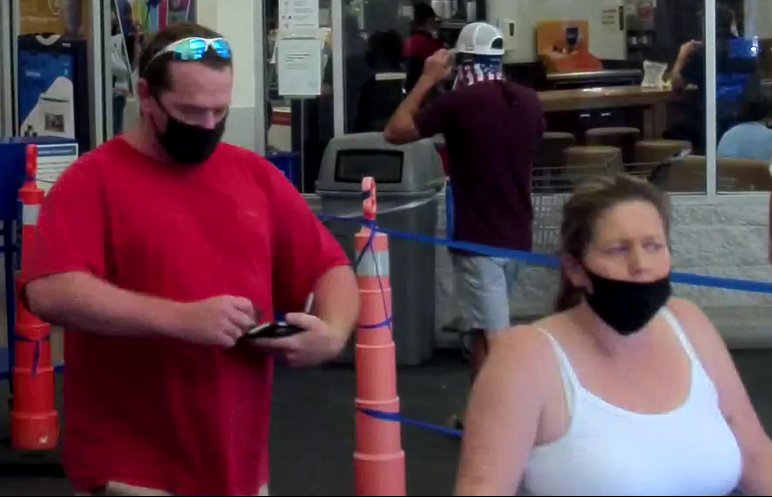 The woman in the photo was with the man during the transaction, as well as a child who was wearing a Spessard Holland Elementary shirt.